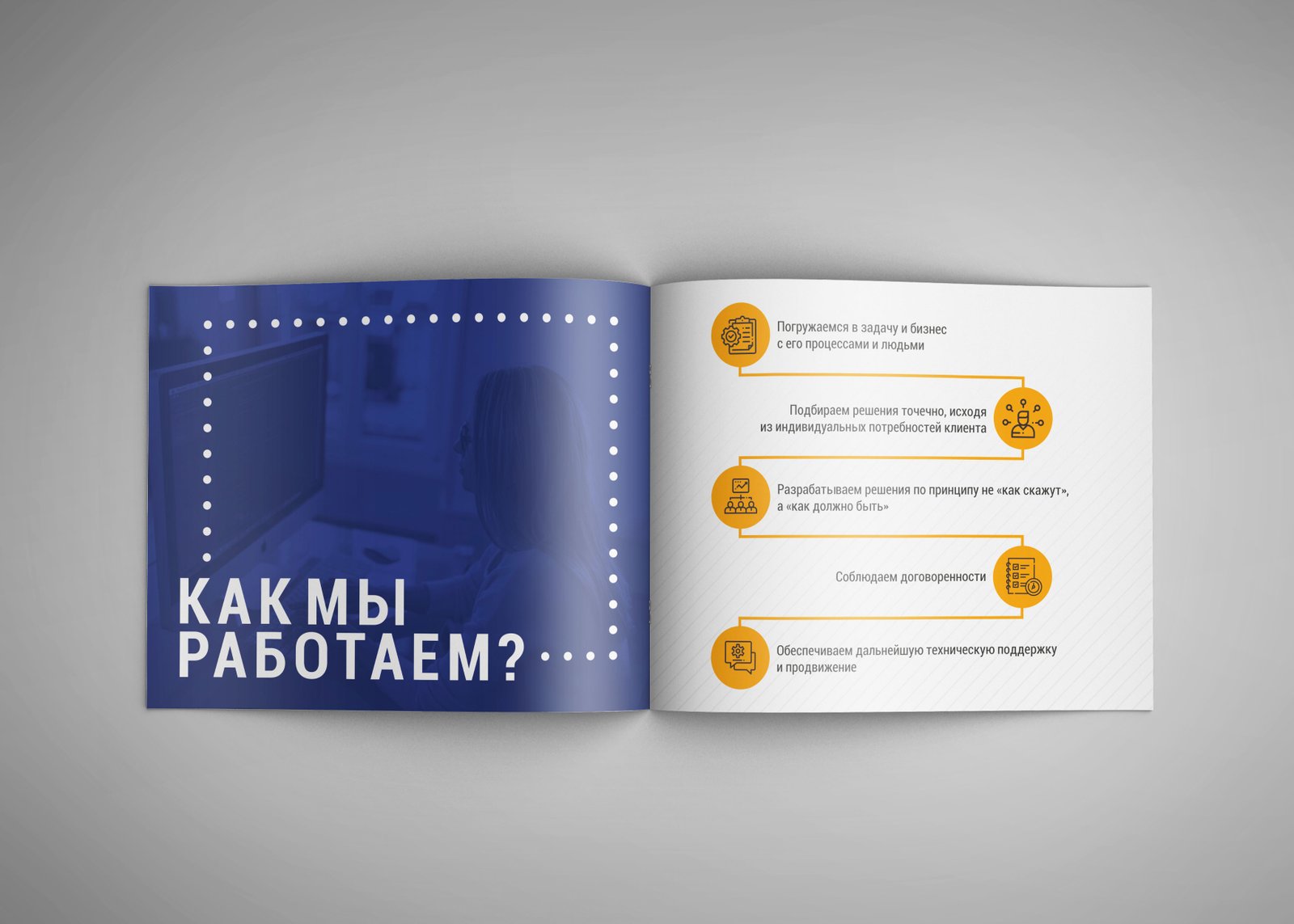 Задача была стандартная — разработать структуру, а потом и дизайн маркетинг-кита для компании, которая занимается разработкой веб-систем.