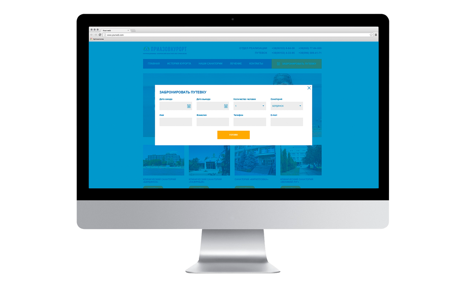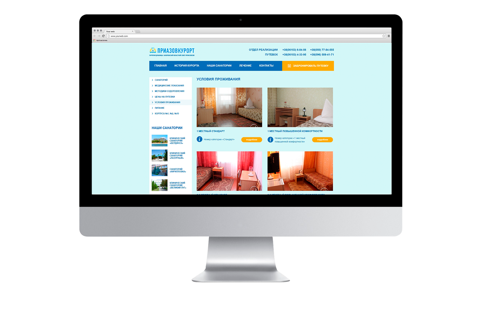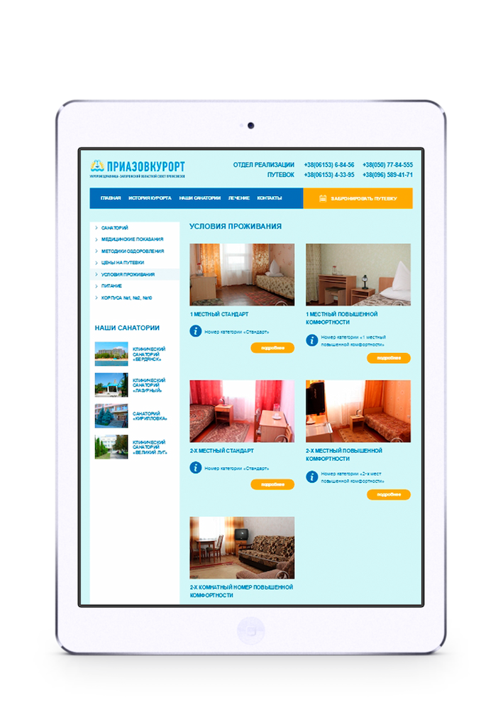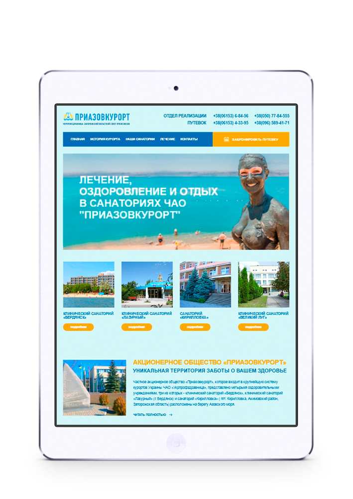 Перед нами стояло завдання – зробити повноцінний сайт компанії і чотирьох санаторіїв, які представляють це підприємство: санаторій «Бердянськ», санаторій «Лазурний», санаторій «Великий Луг», санаторій «Кирилівка».